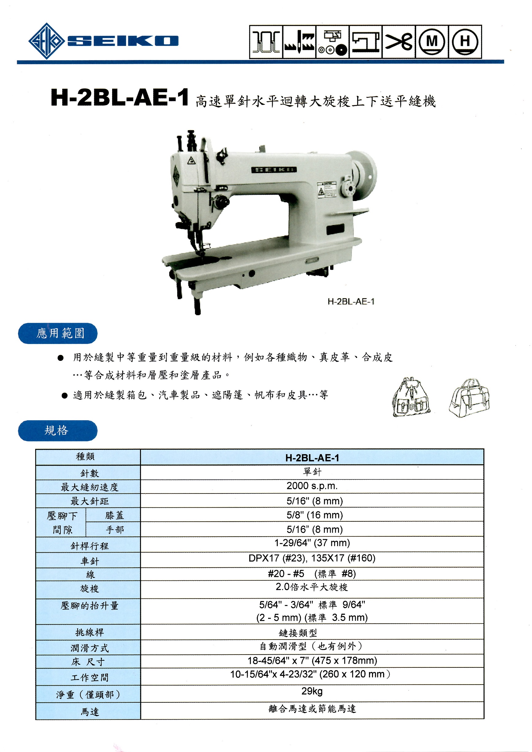SEIKO H-2BL-AE-1 高速單針水平迴轉大旋梭上下送平縫機